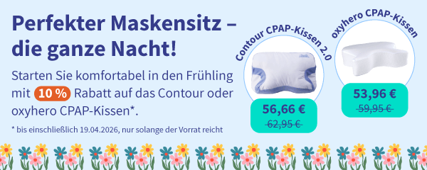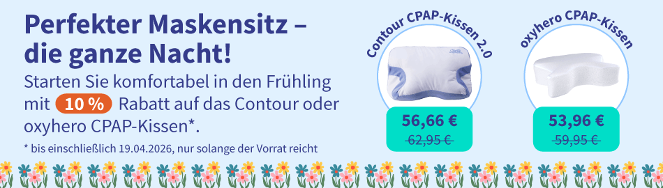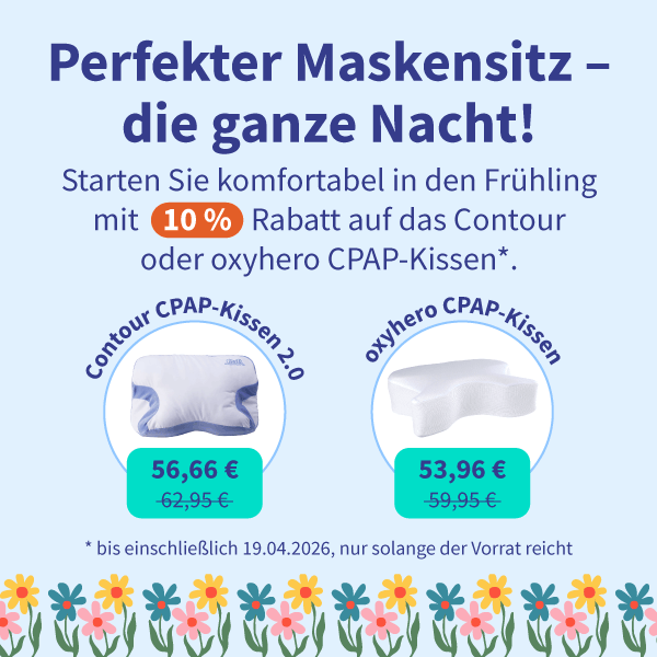 Ein CPAP-Kissen kann Ihnen helfen, deutlich besser mit einer CPAP-Maske in Seitenlage zu schlafen. Dafür sorgen die seitlichen Aussparungen für die CPAP-Maske, die typisch für ein CPAP-Kissen sind. Damit kann es verhindern, dass das Kopfkissen gegen die CPAP-Maske drückt – ein häufiges Problem für Seitenschläfer bei normalen Kopfkissen. Auf sehr guten Liegekomfort müssen Sie dabei nicht verzichten: Unsere CPAP-Kissen sind stets in mehrere Zonen aufgeteilt, um Kopf-, Schulter- und Nackenbereich zu entlasten. Wenn Sie noch unsicher sind, welche Maske dazu passt, finden Sie hier unsere Masken im Überblick. Wenn Sie nach einer ergänzenden Lösung suchen, informieren Sie sich auch über unsere Anti-Schnarch Kissen Alternative.