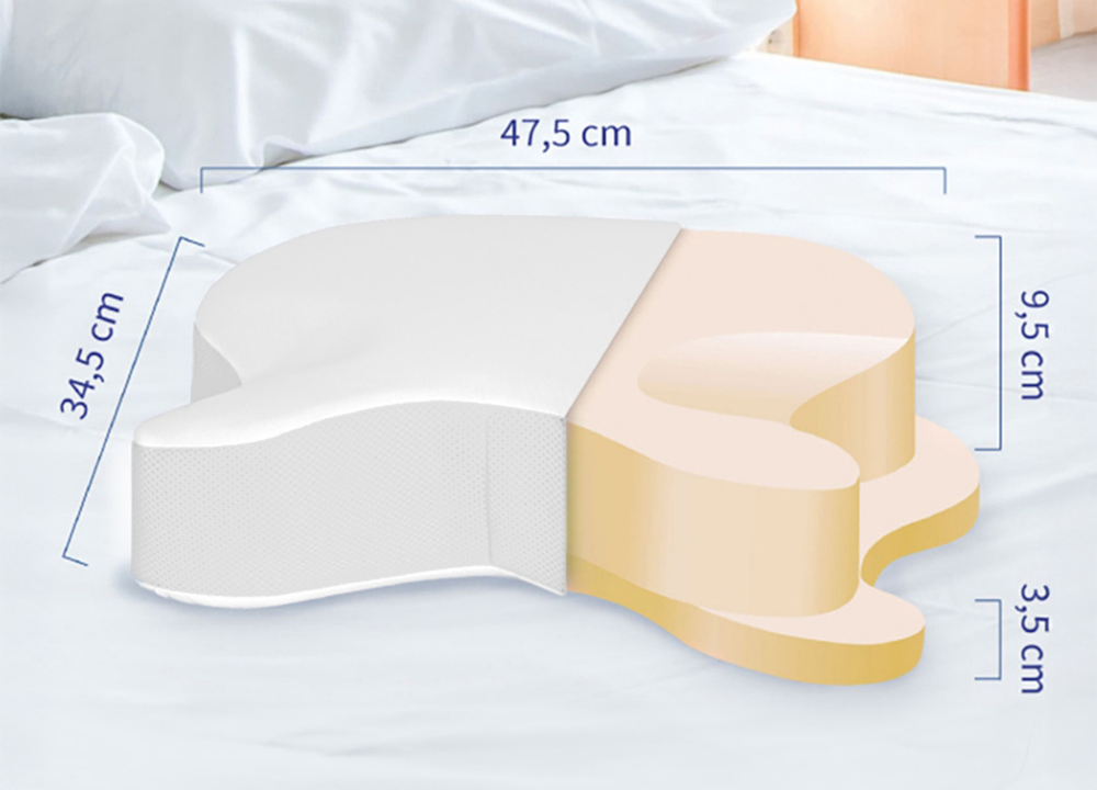 Die seitlichen Aussparungen des oxyhero CPAP-Kissens verhindern, dass die Maske in Seitenlage ins Gesicht drückt oder verrutscht. Leckagen und Druckstellen werden deutlich reduziert.